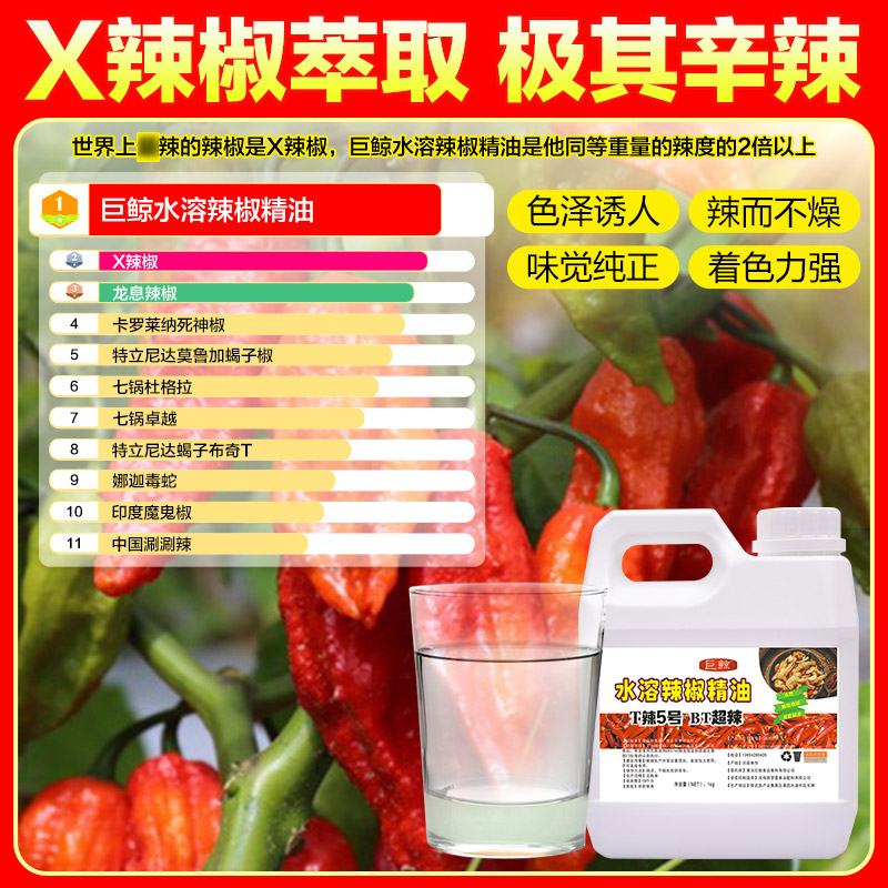 巨鲸辣椒精变态辣水溶无色商用1kg魔鬼特辣油溶超辣武汉鸭脖火锅
