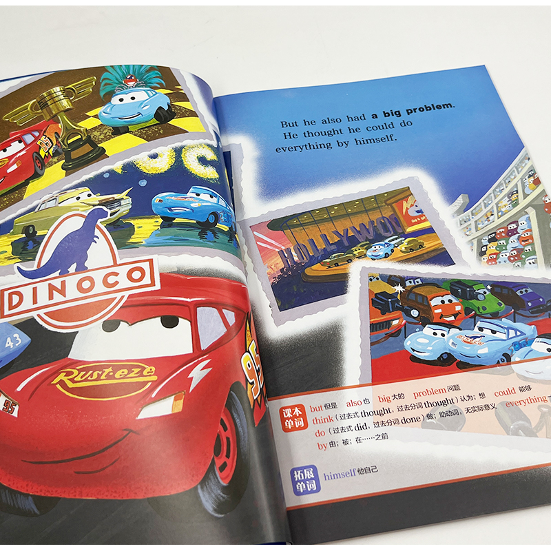 动画英文电影故事绘本 迪士尼经典 赛车总动员 英文版 一二三四五六年级上册下册 儿童小学生英语分级阅读故事书 中英双语绘本