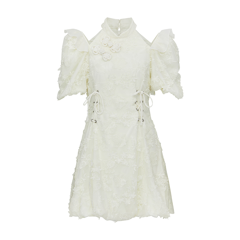 断码 盘扣旗袍领连衣裙收腰长袖 秒杀 新中式 缎面气质 太平鸟女装