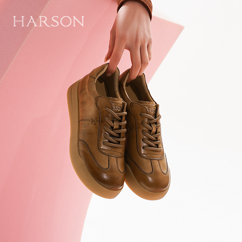 2025春秋季 女鞋 新款 真皮小白鞋 HWCS250110 休闲运动鞋 哈森板鞋