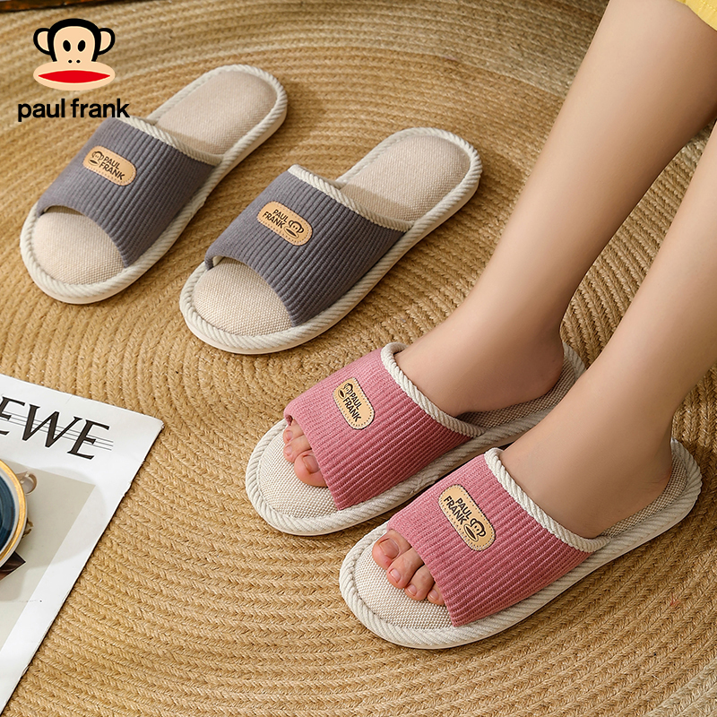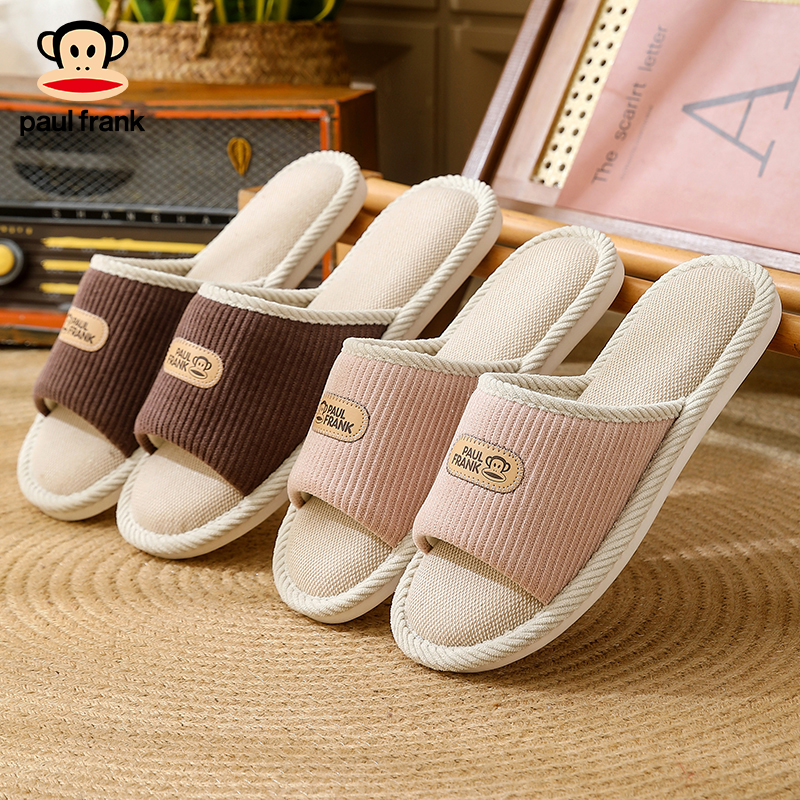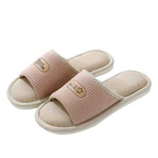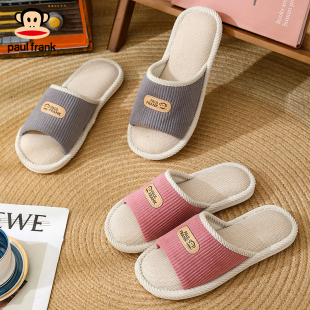 防滑静音抑菌男女布面拖鞋 大嘴猴亚麻拖鞋 一字拖情侣家居鞋 款 四季