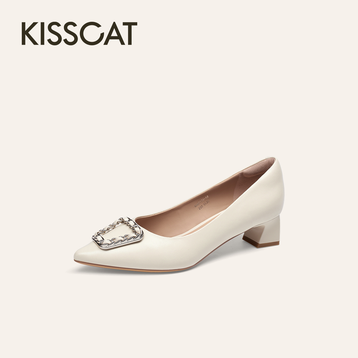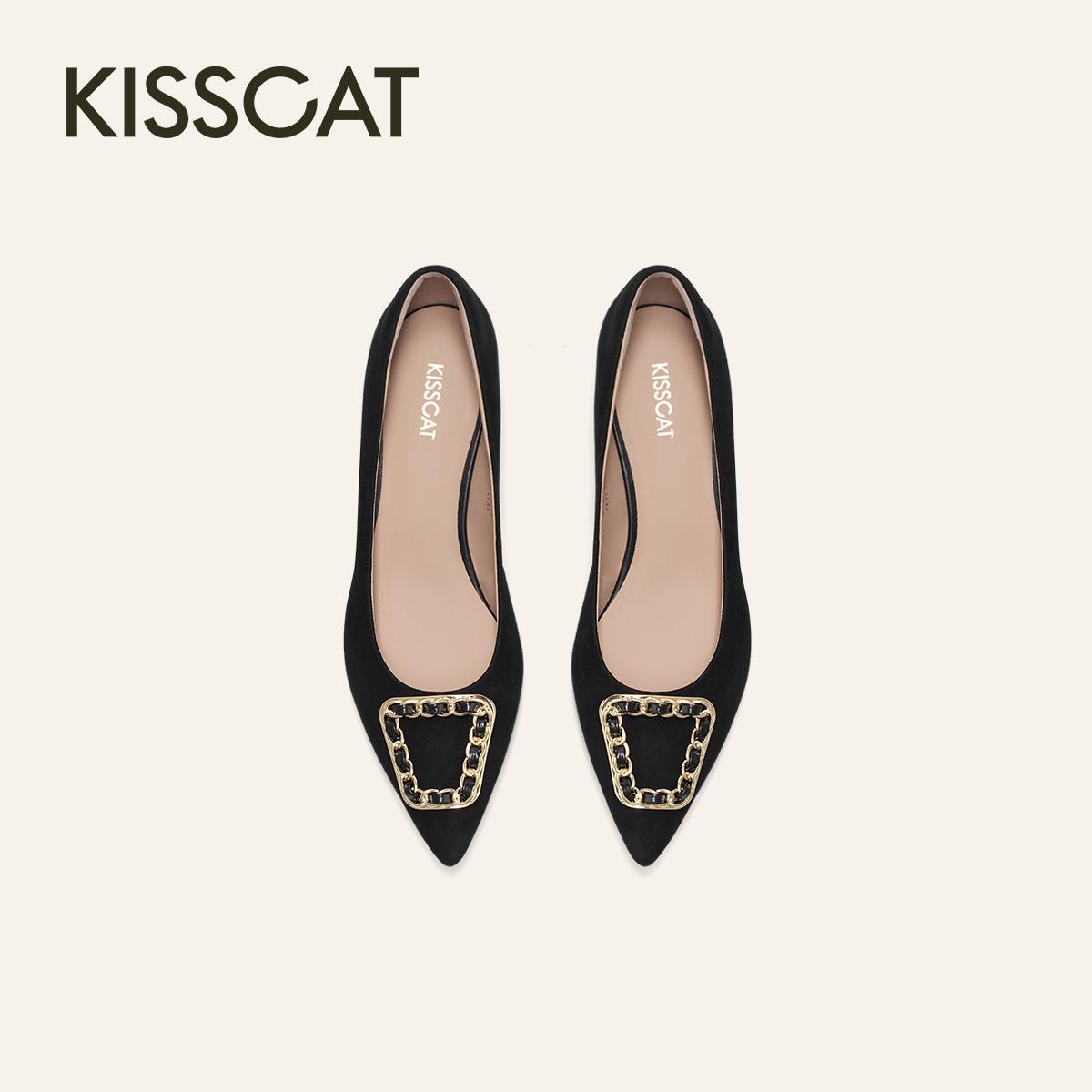 尖头黑色气质粗跟单鞋 KISSCAT接吻猫 25秋新款 通勤单鞋 准时下班