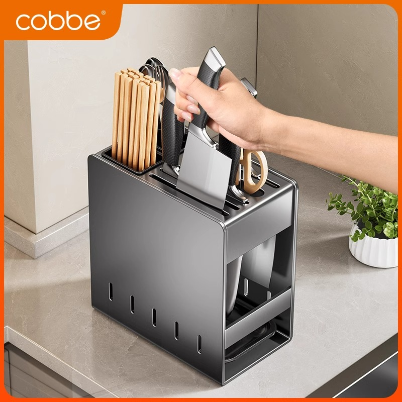 卡贝不锈钢厨房刀架置物架家用台面放菜刀具筷子壁挂式 刀座收纳架