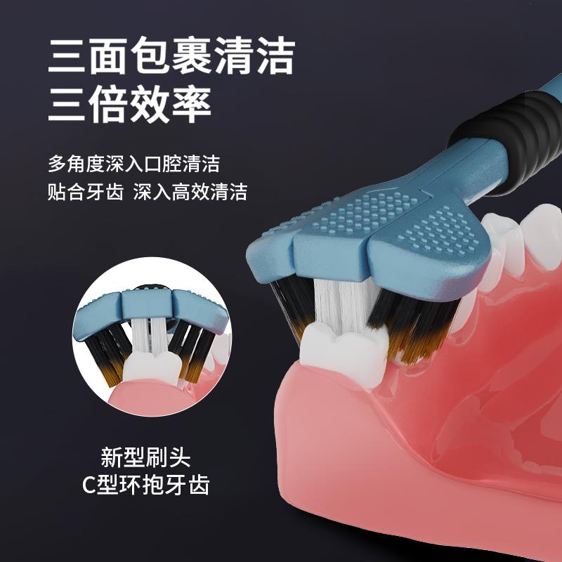 英国三面牙刷软毛成人牙刷专用男士 家用星空色 女生可刮舌苔家庭装