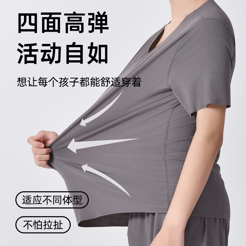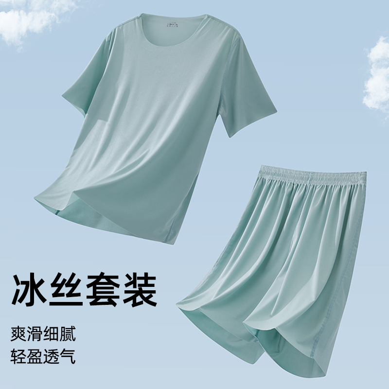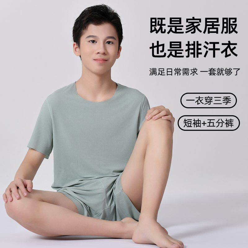 薄款 宽松大码 短袖 男生可外穿家居服套装 短裤 青少年冰丝睡衣夏季
