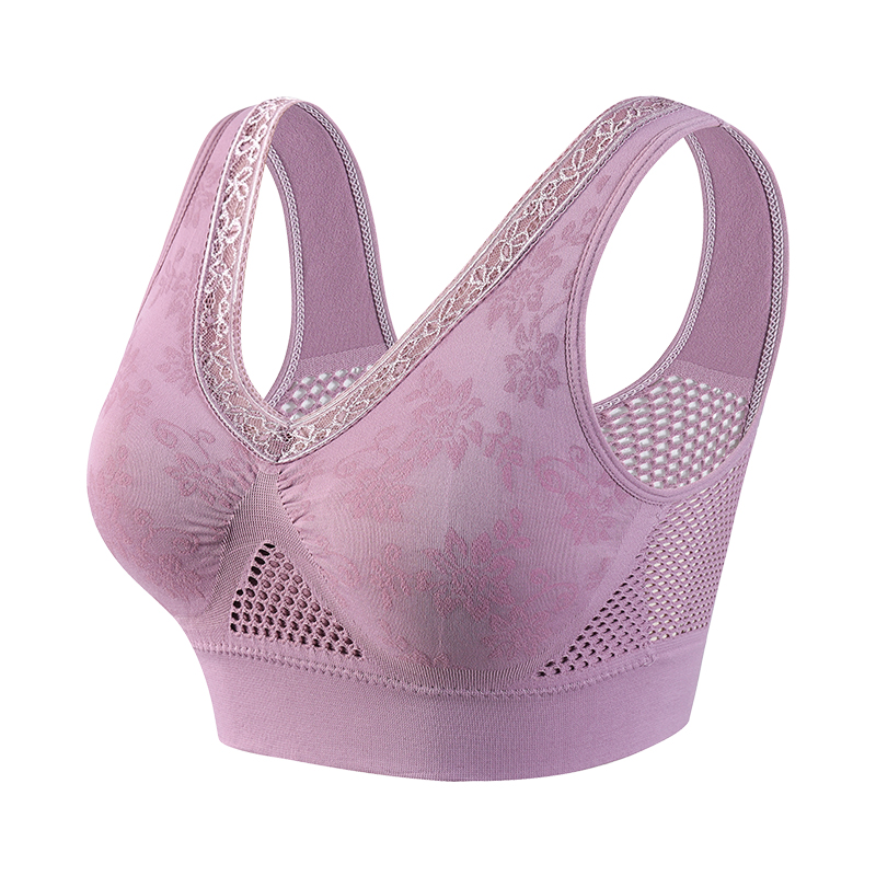 妈妈内衣女中老年人文胸无痕透气背心式 妇女聚拢无钢圈胸罩薄 大码