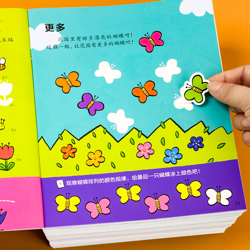 3岁全6册 动手动脑贴纸书0 专注力益智游戏书全12册动手动脑贴纸书0 改小版 益智游戏贴画书早教全脑开发观察力 6岁
