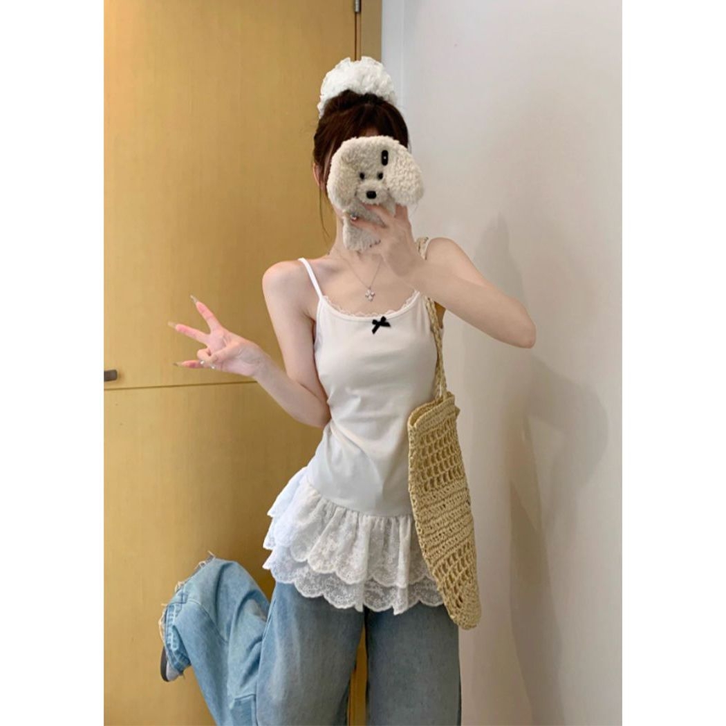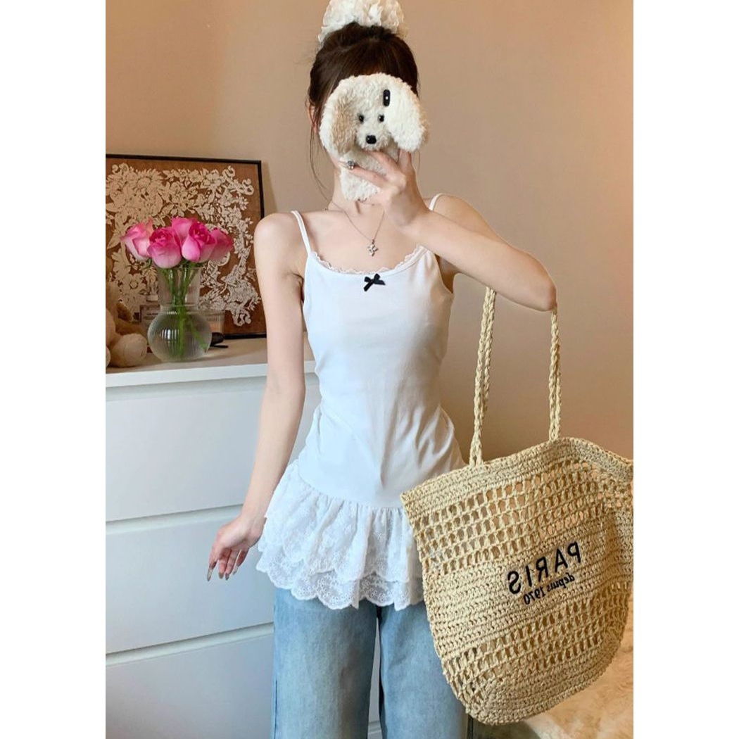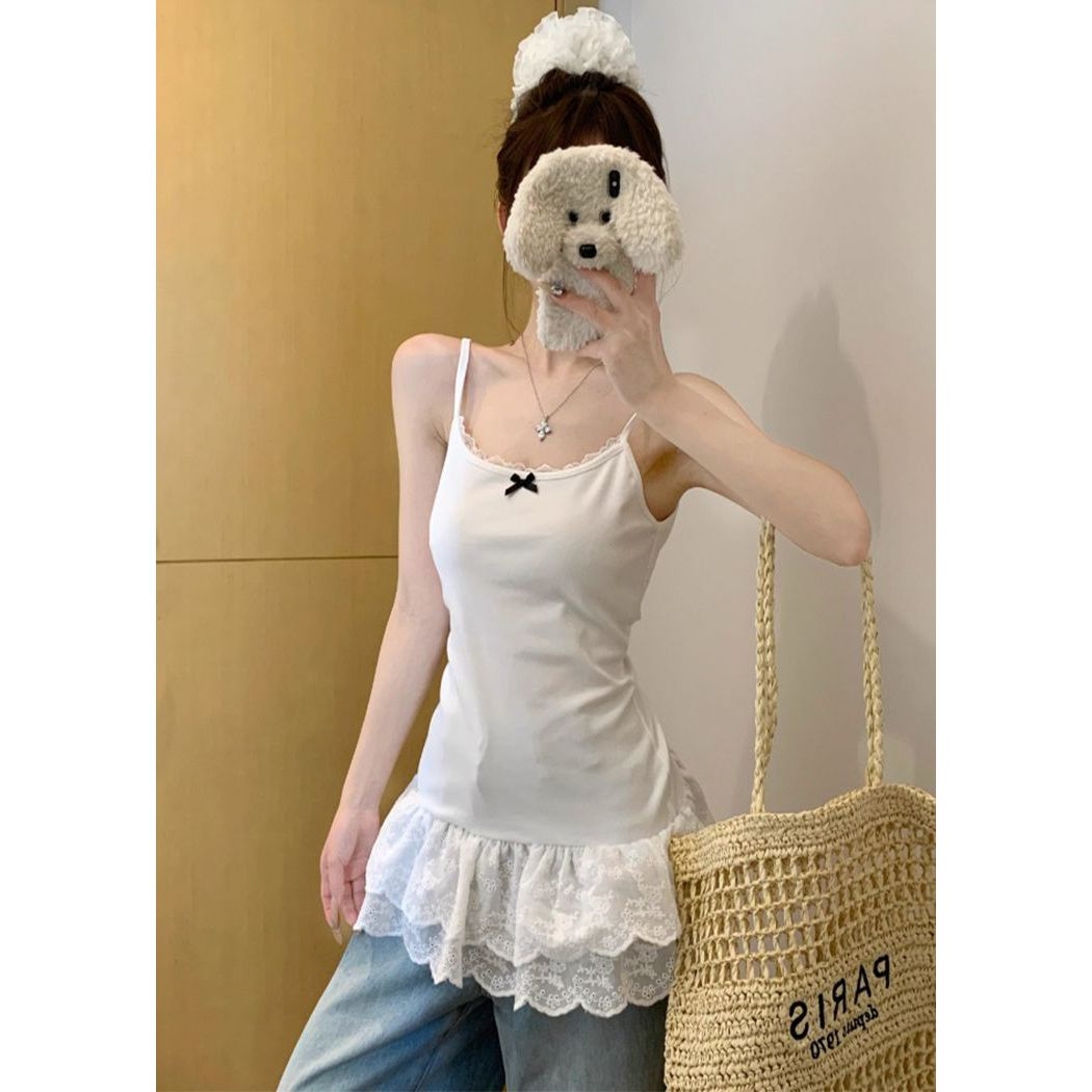 内搭 罩衫 MissLoLar白色吊带背心带胸垫女无袖 上衣美背夏外穿薄款