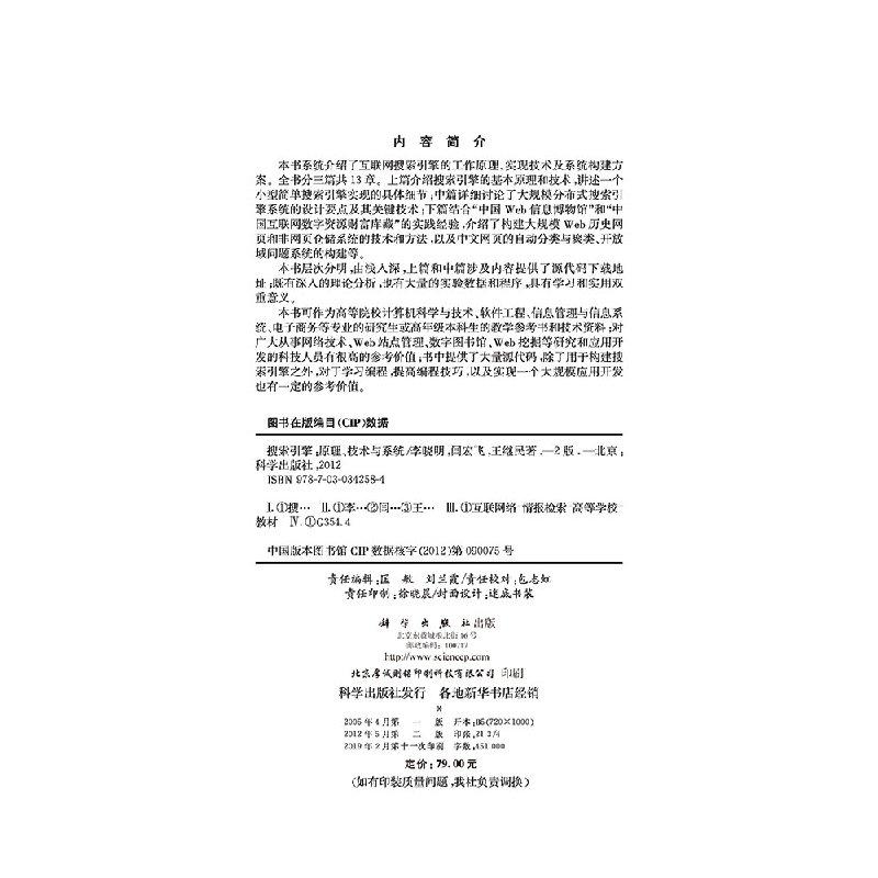 科学出版 第二版 社 搜索引擎——原理技术与系统 全新正版