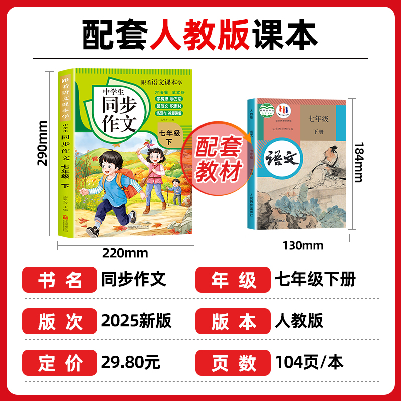 教材全解初中生作文书大全 语文初一教辅资料满分作文优秀高分作文范文素材积累精选辅导书部编版 2025七年级上下册同步作文 人教版