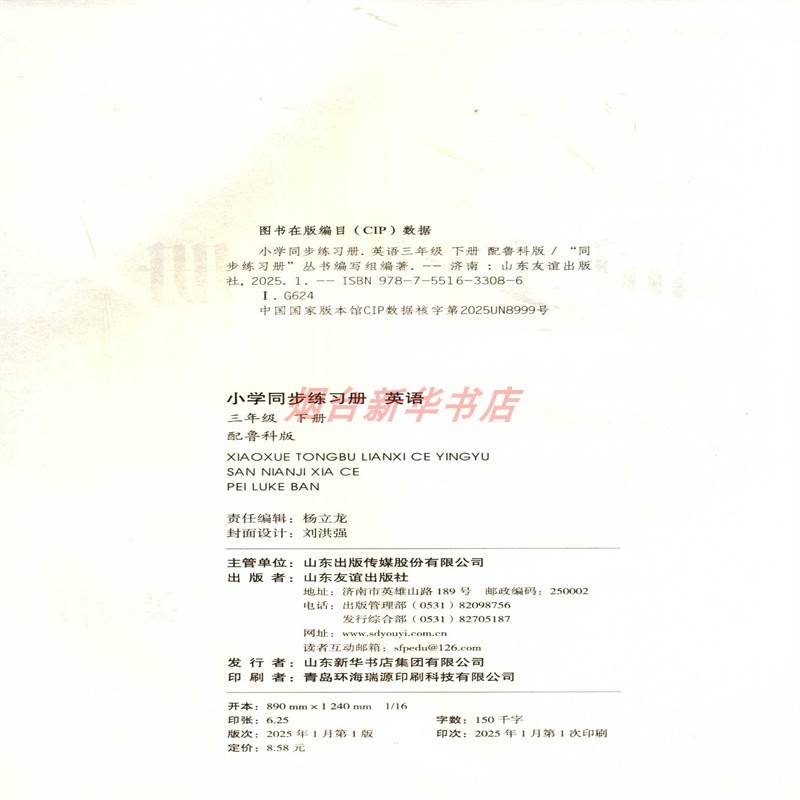 2025五四制英语3三年级下册小学同步练习册配鲁科教辅山东友谊出版 社
