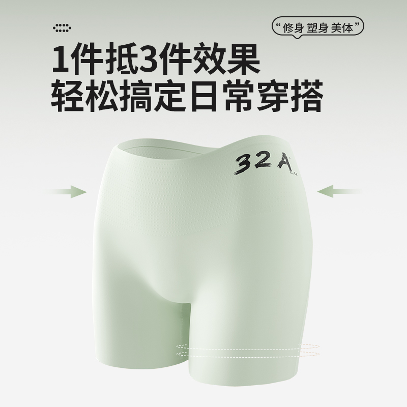 三合一收腹提臀打底四角平角短裤 猫人安全裤 防走光女冰丝无痕内裤