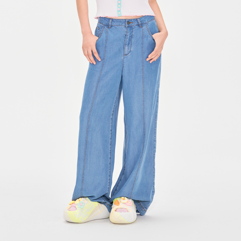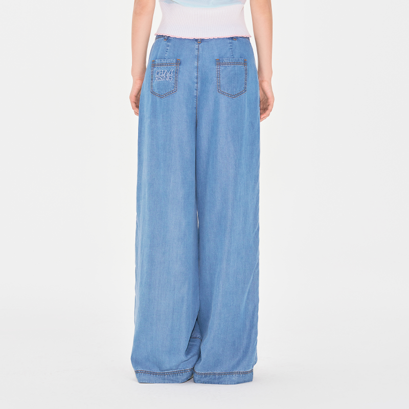慵懒垂感拖地裤 女2025秋季 宽松阔腿牛仔裤 淘稚气防褪色丹宁蓝美式