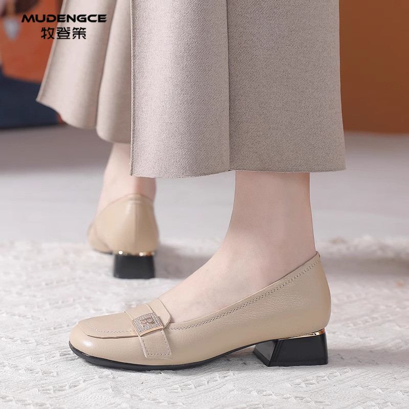 仙女风瓢鞋 秋季 浅口百搭中跟奶奶鞋 大码 真皮单鞋 女鞋 粗跟2025新款