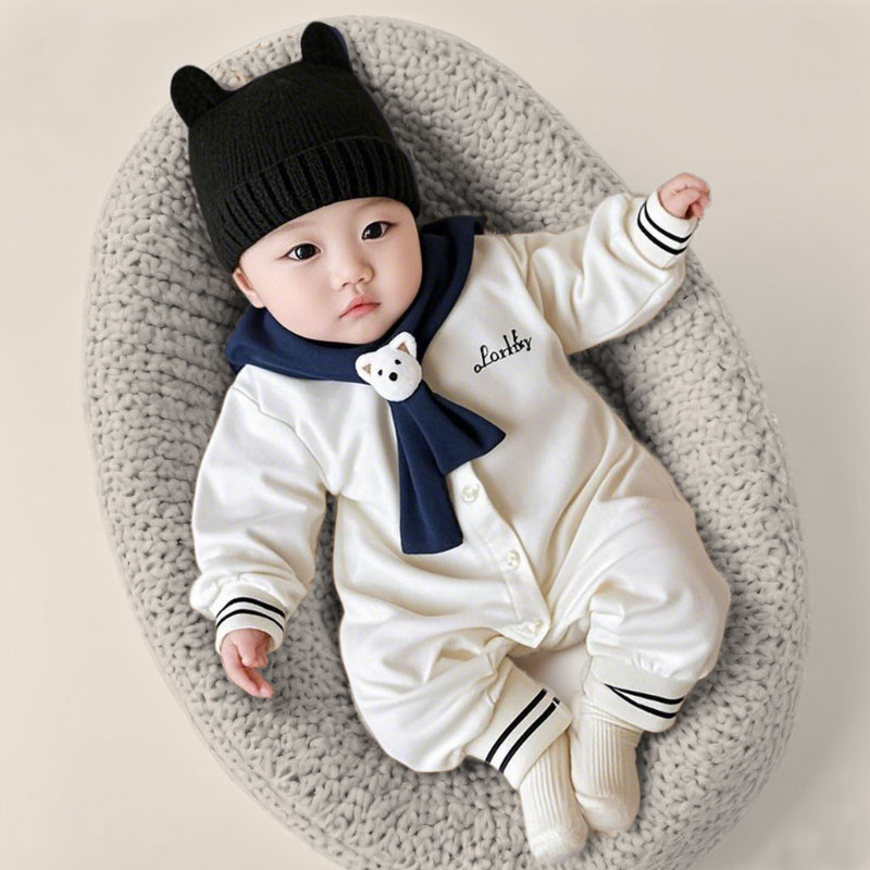 婴儿洋气小春装 哈衣爬服 a类海军风小月龄宝宝韩系穿搭帅气春秋款