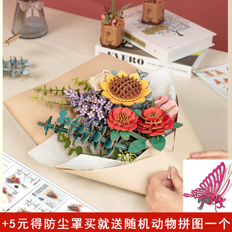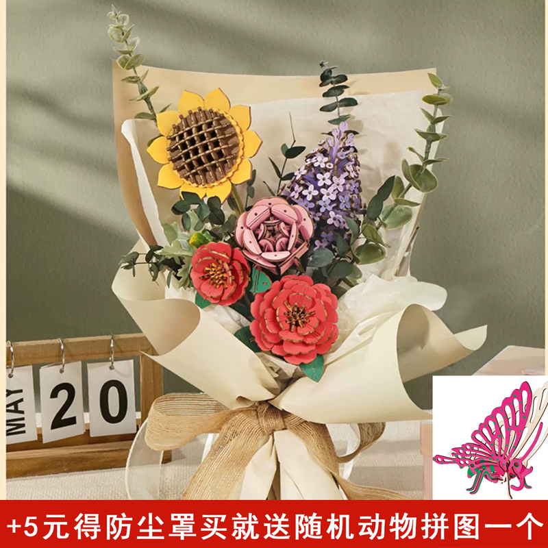 若物若客木艺花境花束手工积木3D立体拼装 创意教师节礼物拼图木质