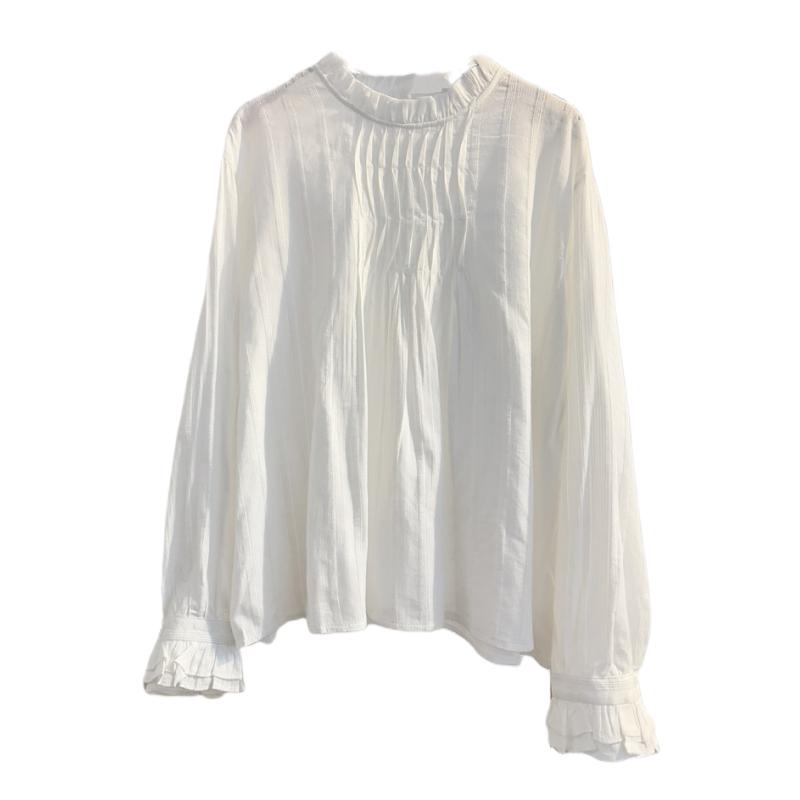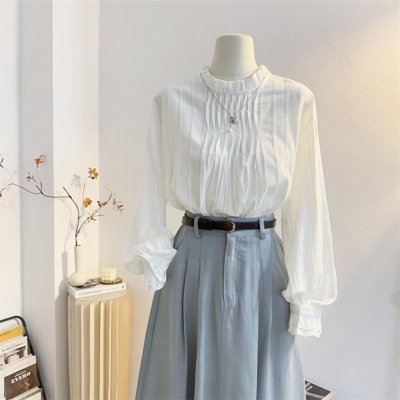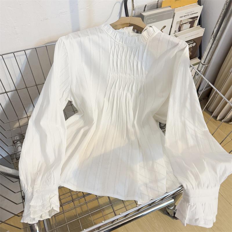 小衫 木耳花边立领衬衫 褶皱设计感宽松套头法式 2025春季 上衣 女长袖