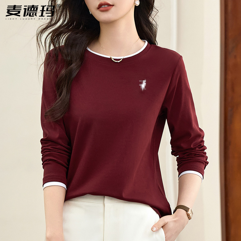 高端洋气爆款 秋冬内搭可外穿2025新款 正肩上衣T T恤女士打底衫 长袖