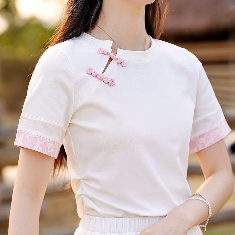 女装 ATAR新中式 2025年新款 t恤夏季 国风盘扣上衣圆领清新减龄 短袖