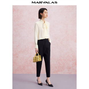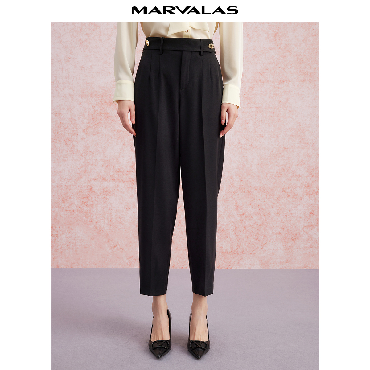 设计感黑色休闲长裤 曼德诗气质显瘦直筒裤 高腰萝卜裤 新款 2025秋季