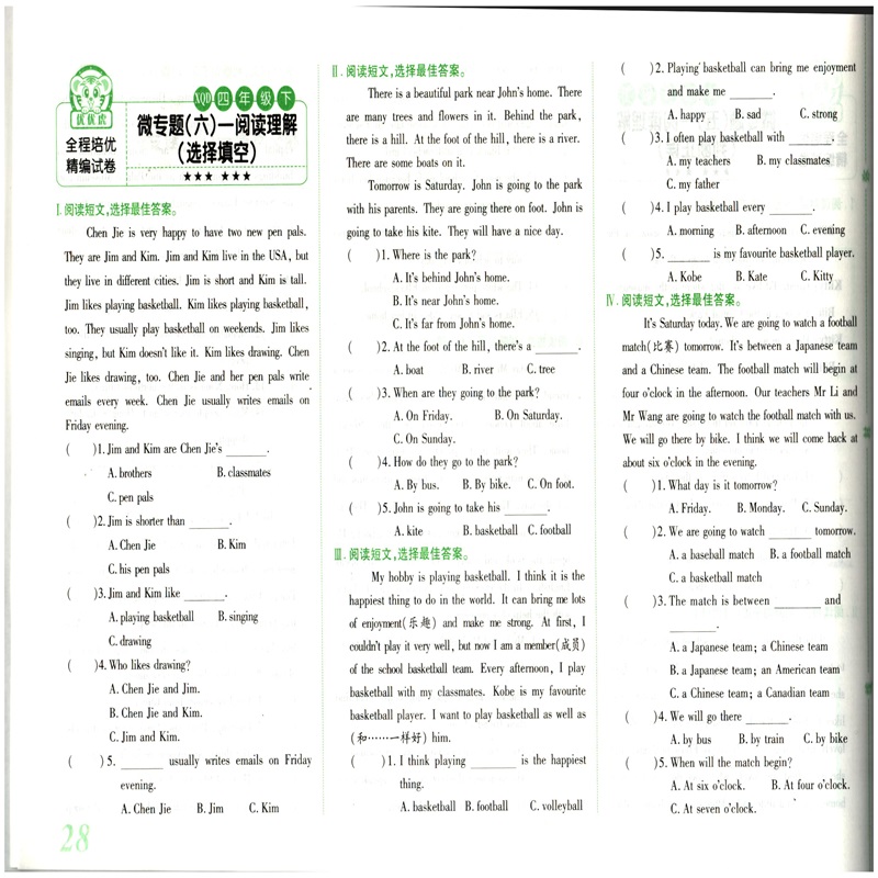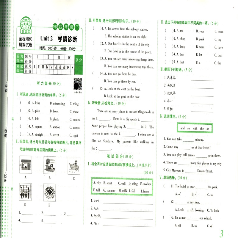 一年级起点 新起点 4年级下同步试卷期中期末试卷含听力 黄冈海淀全程培优必刷题小学英语四年级下册人教版 2025优优虎新版
