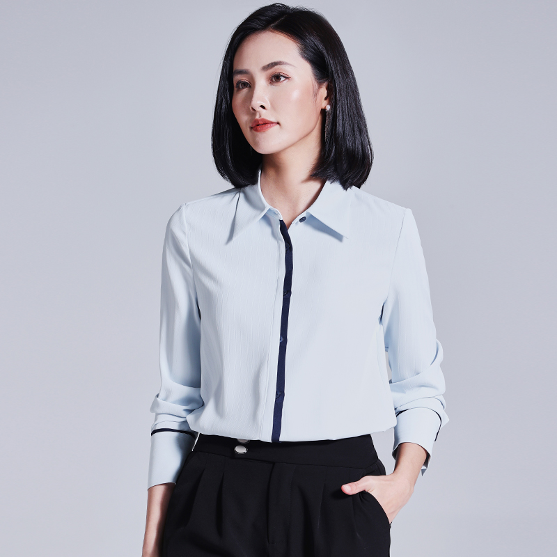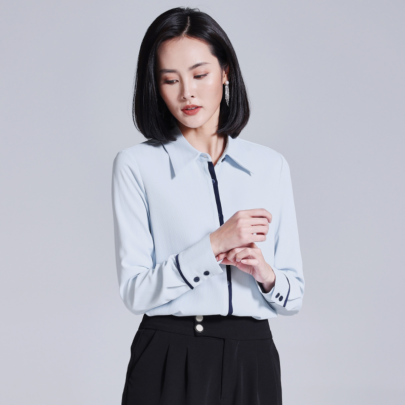 工装 衬衫 白色衬衣藏青长袖 灰色职业春夏秋正装 气质工作服 女白修身