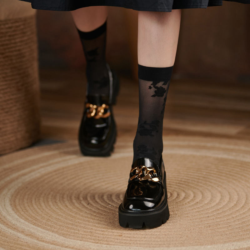 学院风漆皮中跟单鞋 Hunnz 英伦风厚底粗跟松糕乐福鞋 女新款 小皮鞋