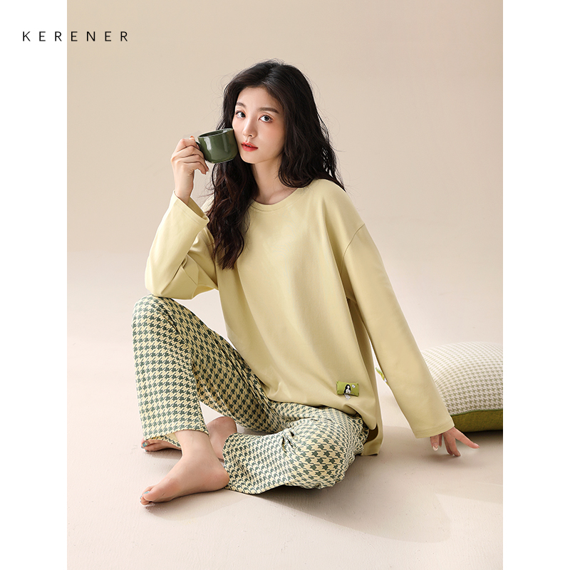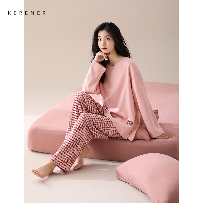 纯棉休闲套头多色千鸟格家居服春季 睡衣女春秋款 超柔软 可人儿