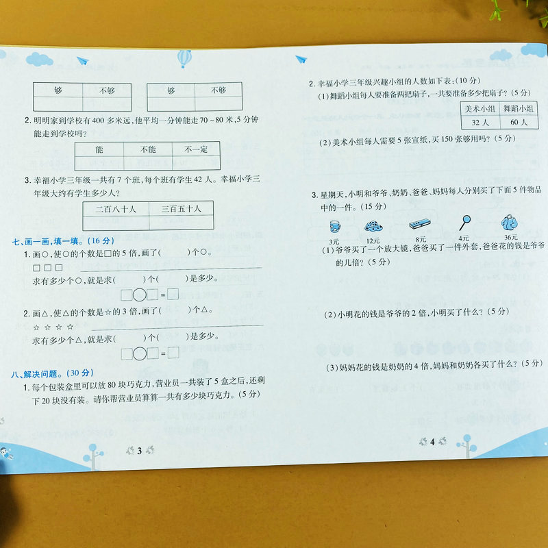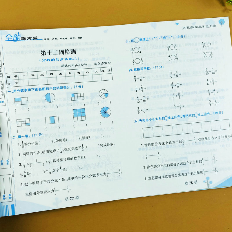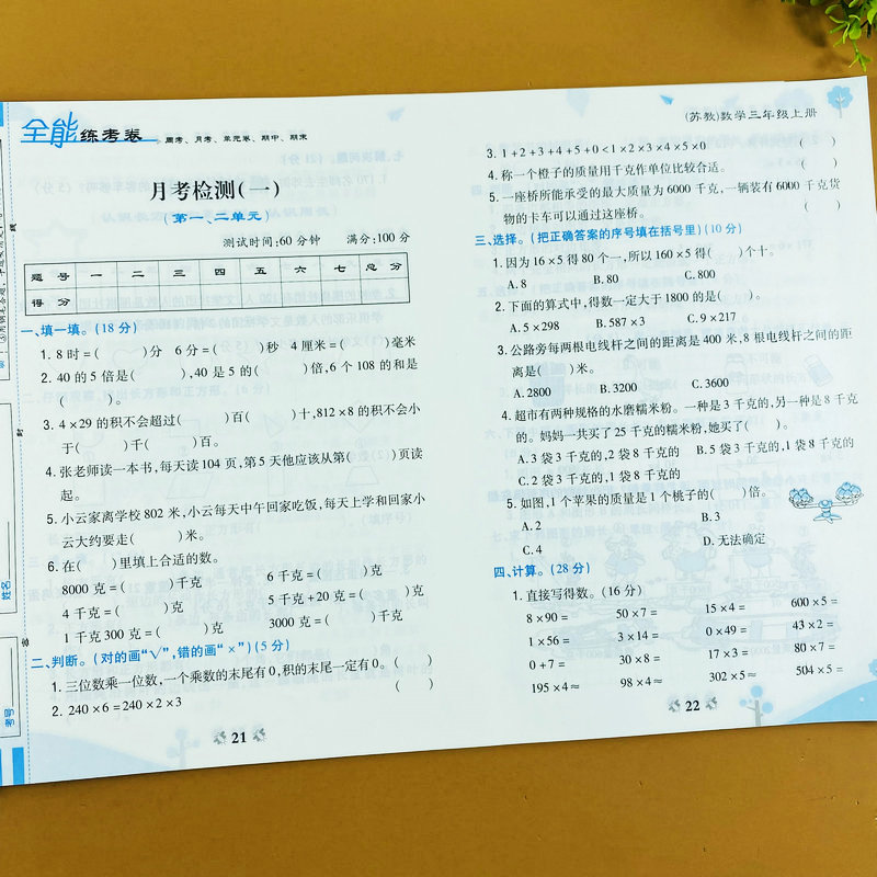 试卷周考测试单元 同步训练3年级上册数学苏教版 测试月考期中期末测试卷同步测试荣恒 数学测试卷三年级上册数学试卷苏教版 苏教版