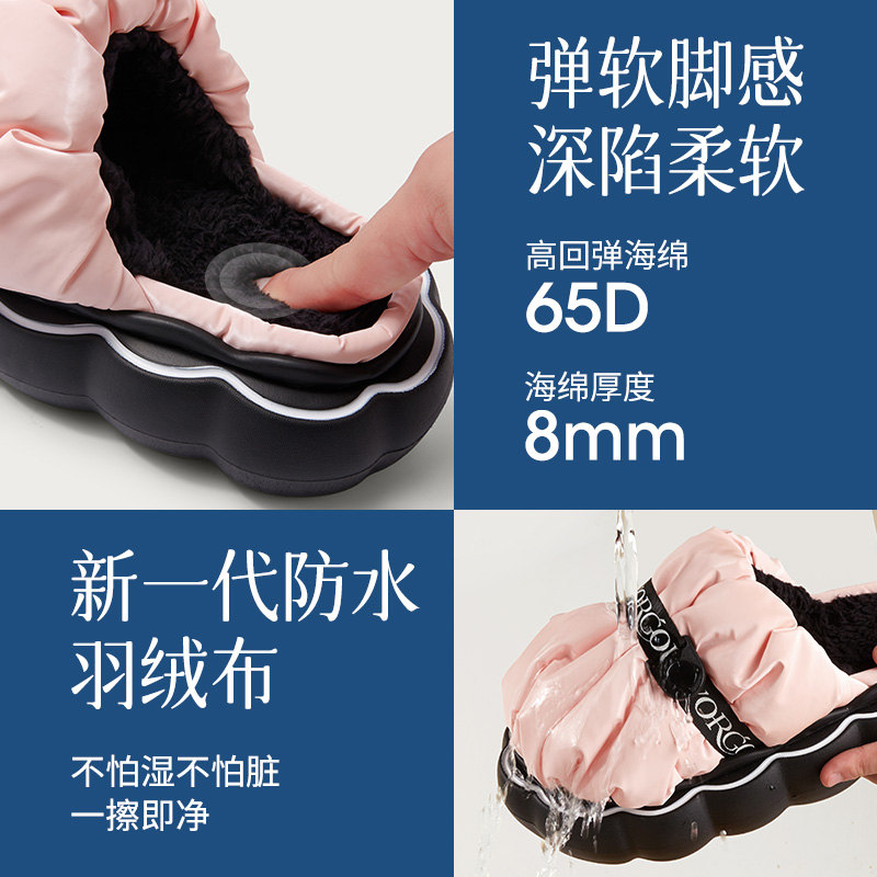 居家居室内保暖加绒防水2025新款 冬季 厚底外穿 女款 远港花瓣棉拖鞋