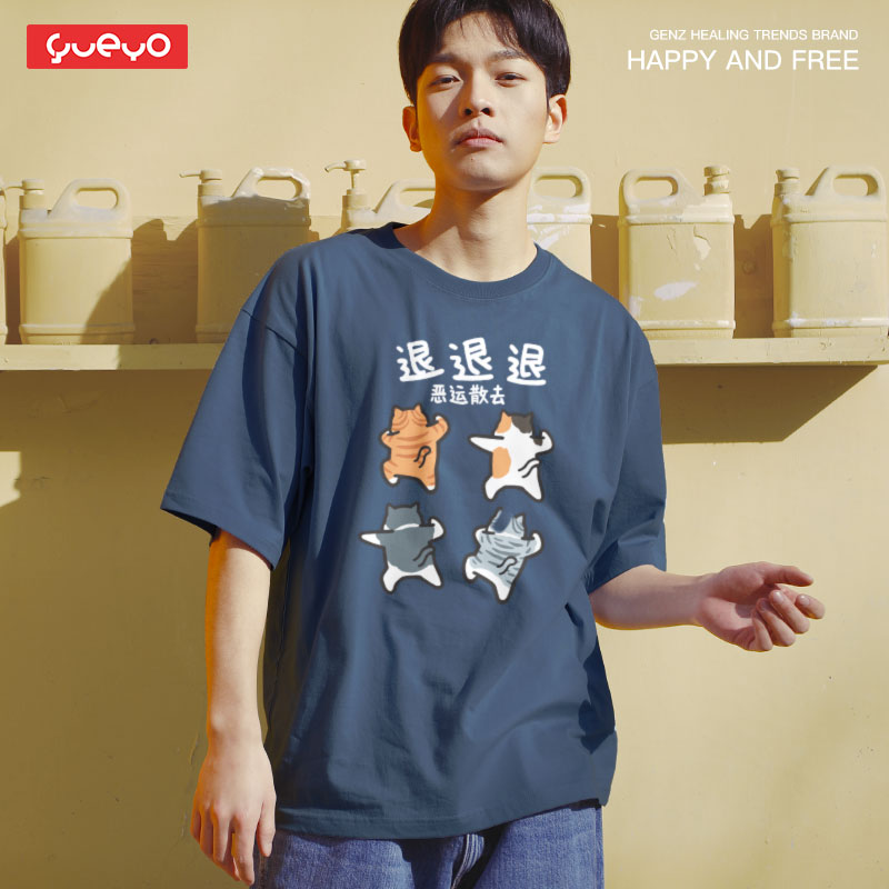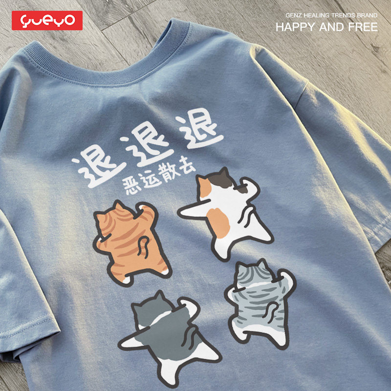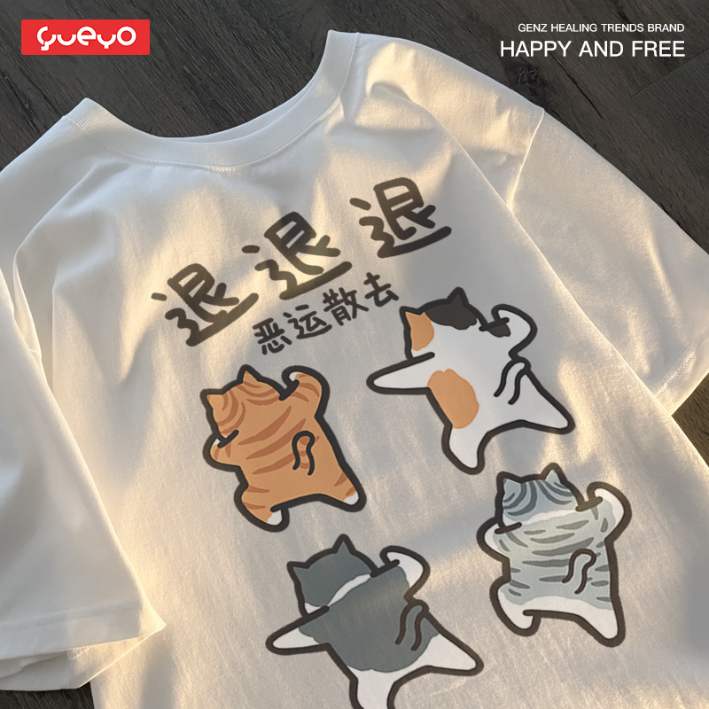 恶运退散T恤男网红有趣恶搞搞怪搞笑原创落肩猫短袖 悦游 退退退