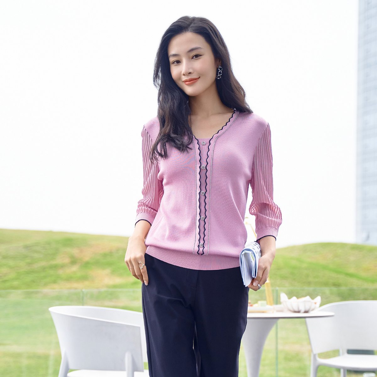 针织衫 优雅轻熟风休闲缝钻七分袖 1C31Z6503 专柜新款 歌蒂诗秋季