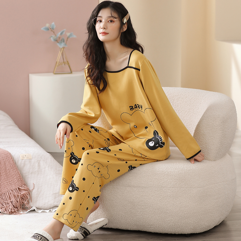 全棉家居服休闲套装 曼系男士 甜美时尚 宽松开衫 纯棉睡衣女春秋时尚