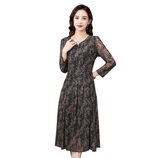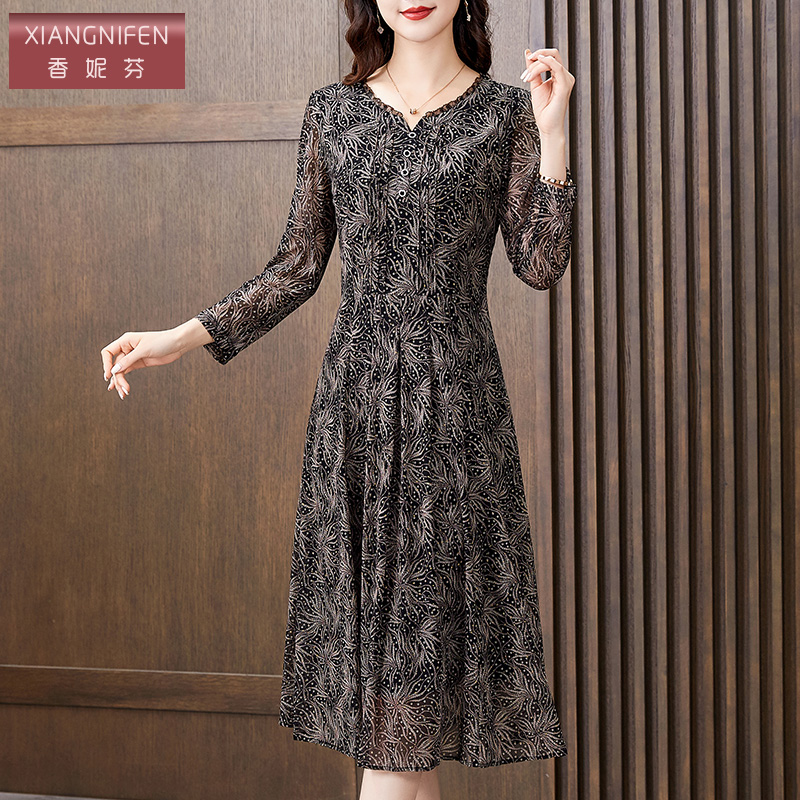 香妮芬中年妈妈气质台湾网纱连衣裙2024新款 早春洋气高端显瘦裙子
