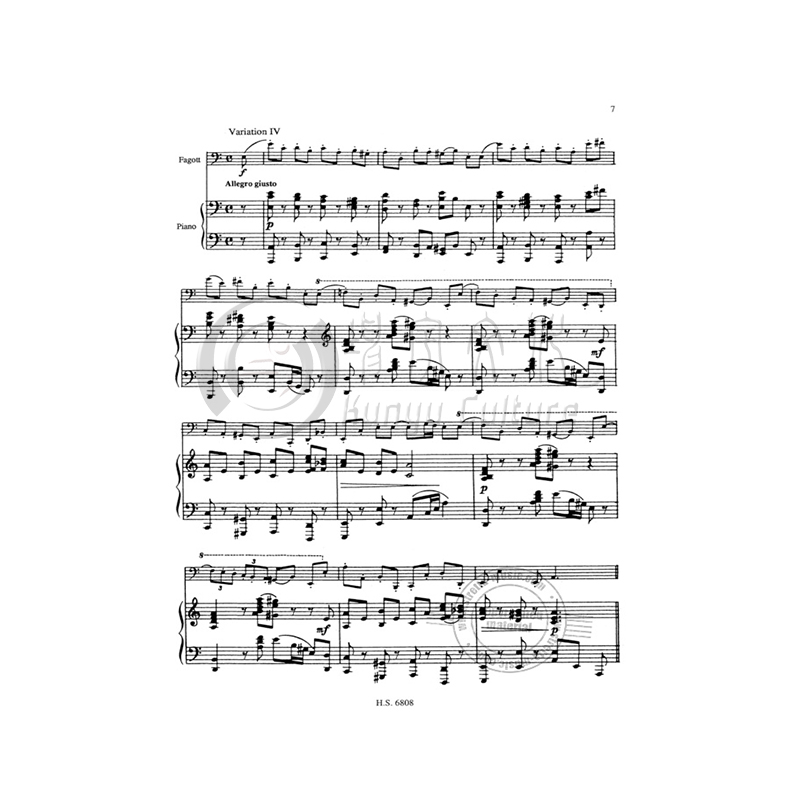 and 巴松管和钢琴 Dvariona 主题曲和变奏曲 Variations Piano 思考斯基原版 Bassoon 德瓦里奥纳斯 SIK6808 书 for Theme