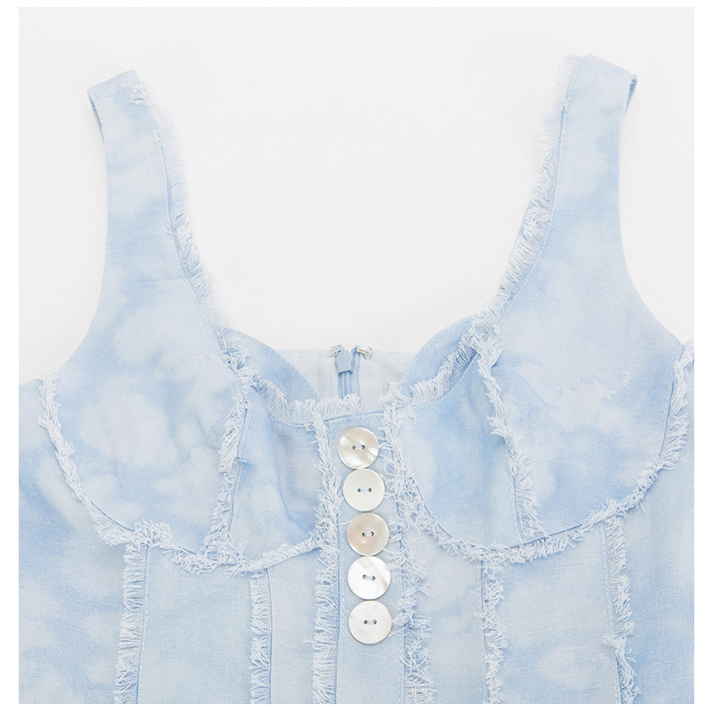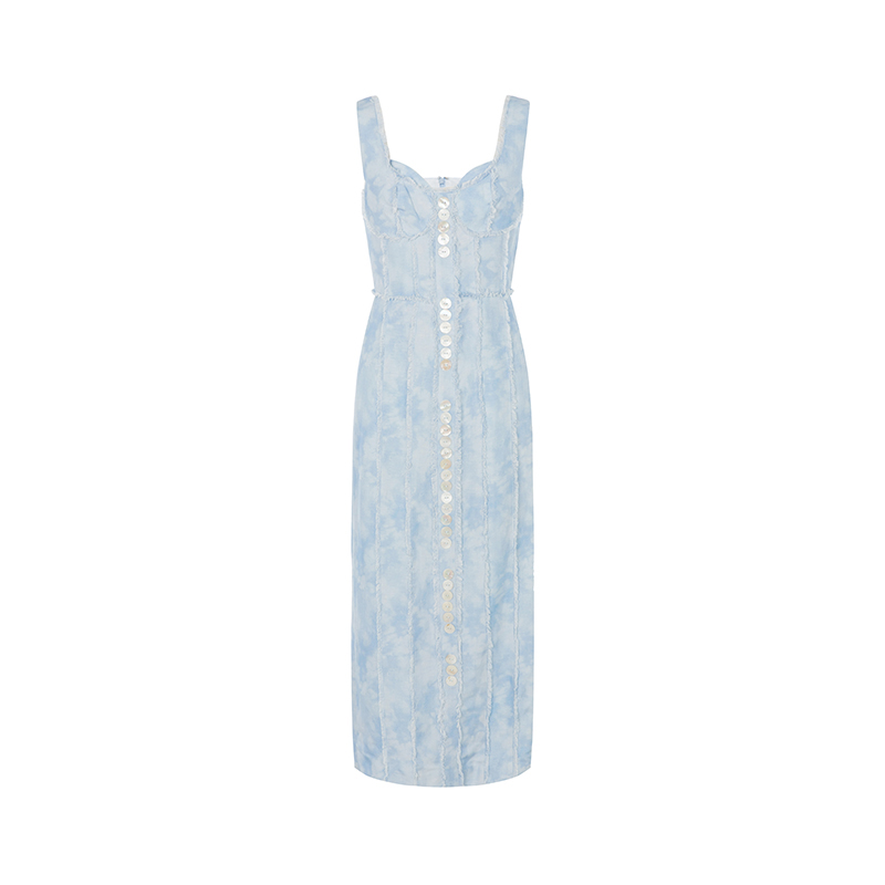 休闲长连衣裙 女士简约剪裁花色图案设计气质无袖 MEO