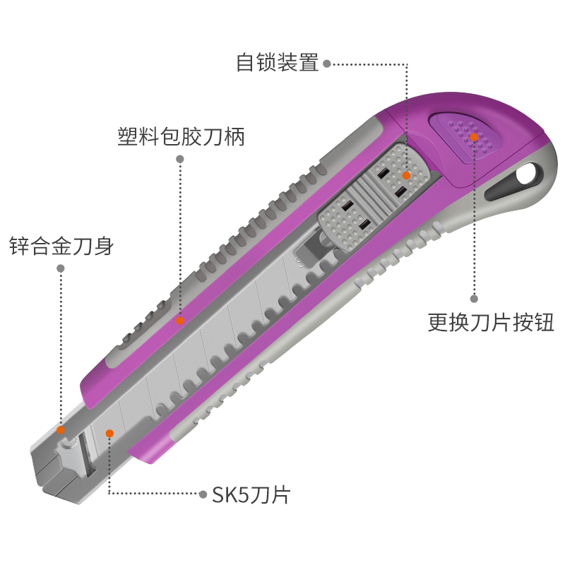 拓伏锐美工刀大号工业级壁纸刀裁纸刀自动刀匣式 割刀带5片18m刀片