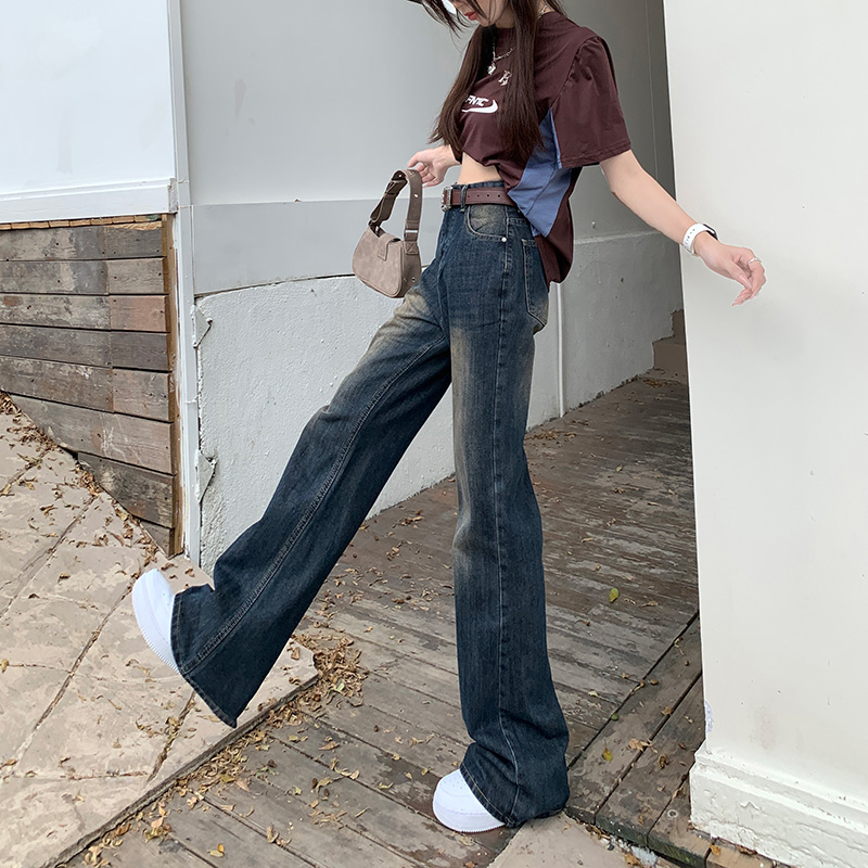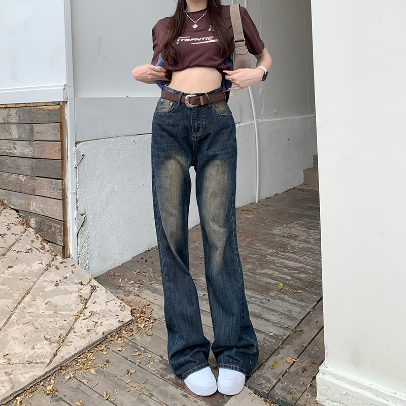 女新款 原色裤 阔腿裤 百搭时尚 子 宽松显瘦直筒裤 唐狮25春秋牛仔裤