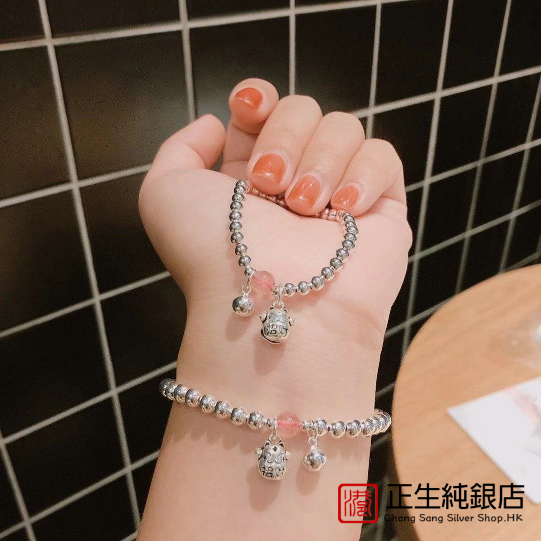 I足金999小金珠圆珠黄金光面珠手链两世欢转运生日礼物 特大福