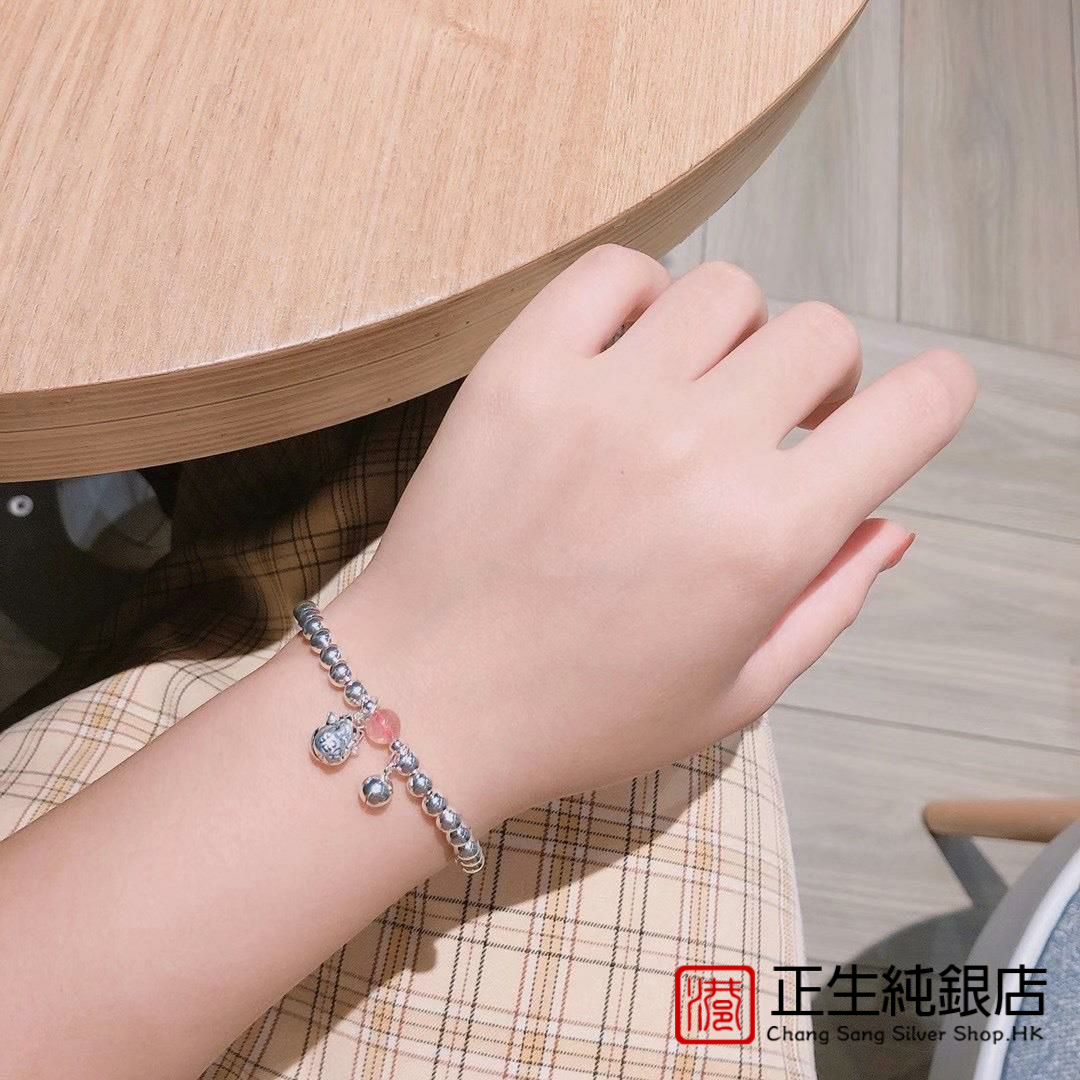 庆祥泰真品朱砂手串女款 官方旗舰店天然和田玉足金黄金手链女 正品