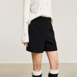 商场同款 短裤 LILY2024冬新款 高腰百搭微A字黑色休闲裤 女 女装