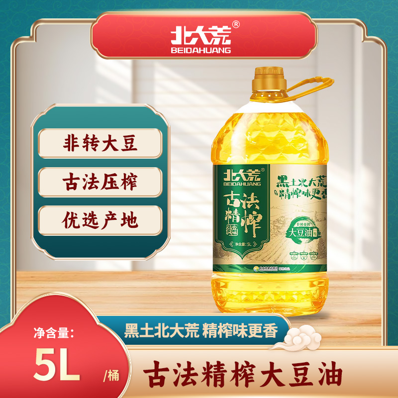 北大荒古法精榨大豆油5L笨榨非转基因一级大豆油物理压榨食用油