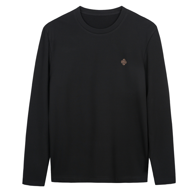 舒适简约休闲内搭打底衫 才子男装 新款 T恤男2024秋季 黑色圆领长袖