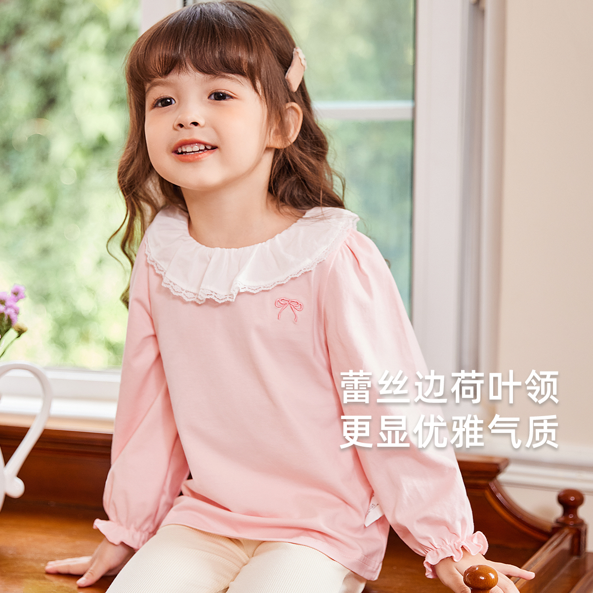 7A抑菌 T恤秋宝宝秋季 女童打底衫 上衣儿童内搭长袖 衣服 3小童法式