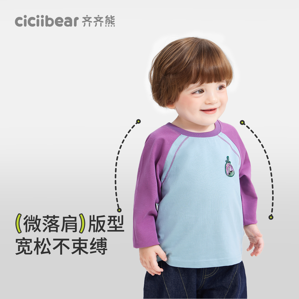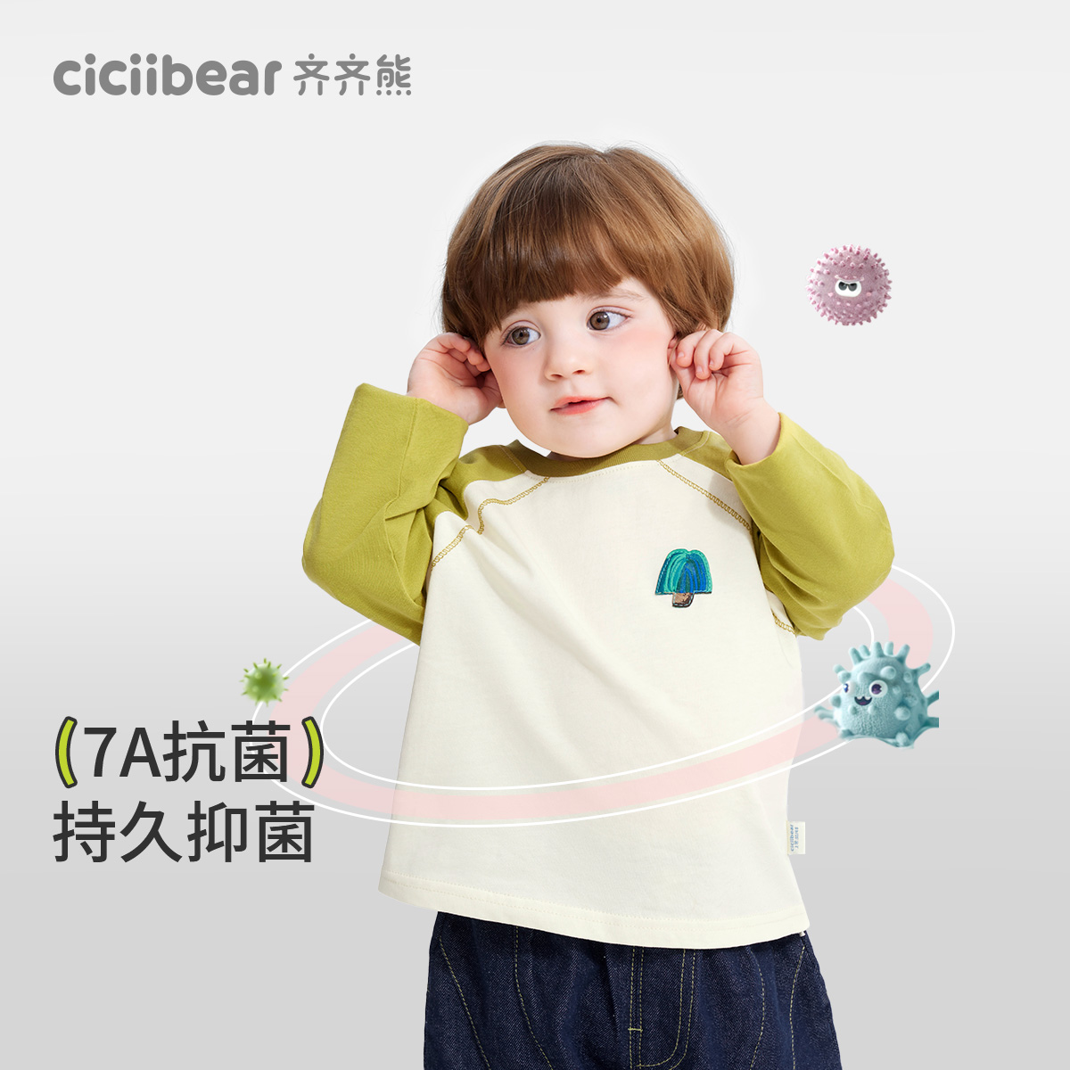 7A抗菌 秋季 齐齐熊宝宝t恤长袖 男童插肩袖 儿童运动衣上衣 春秋款