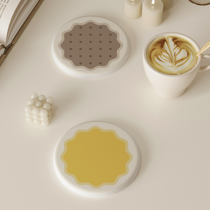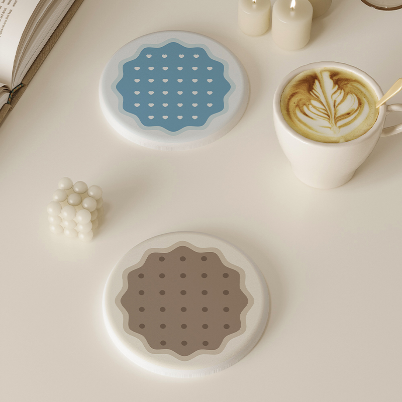 四色饼干杯垫轻奢硅藻泥隔热垫茶垫家用硅藻泥防烫垫餐桌垫杯垫
