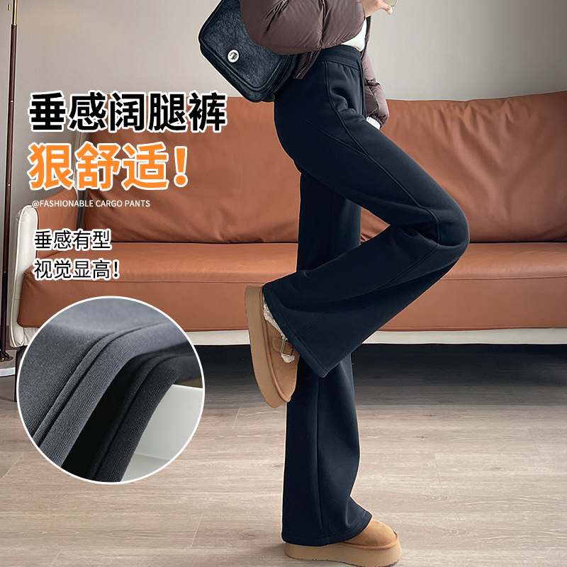 女2024新款 小个子显高休闲裤 爆款 运动裤 子 秋冬季 加绒加厚微喇叭裤