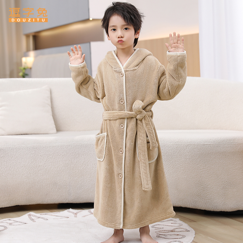 特大码 300斤睡衣男秋冬珊瑚绒中长睡袍加绒加厚宽松学生家居服