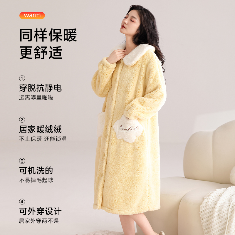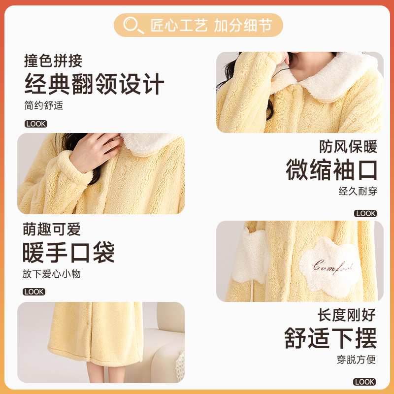 女士家居服 法兰绒浴袍可爱甜美睡衣长款 猫人珊瑚绒睡袍女冬季 新款