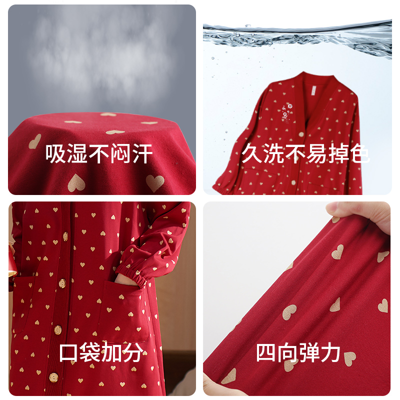 浴袍 睡衣红色晨袍结婚睡裙大码 轩靓本命年睡袍女士春秋季 纯棉长袖